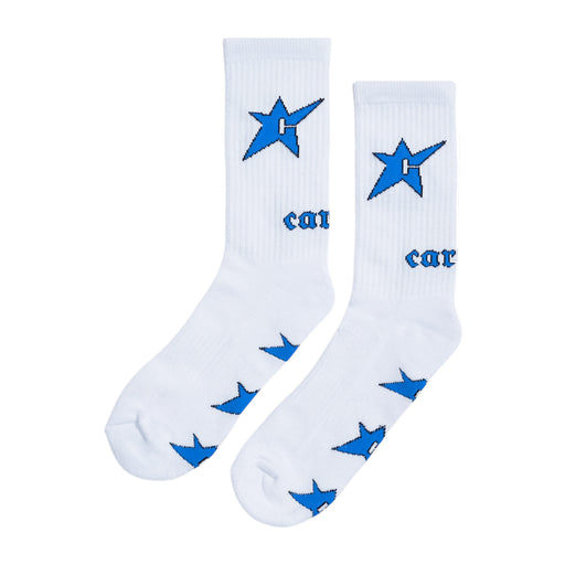 Butter Goods Encounter Socks in White Acrylic crew socks Jacquard pattern on side One Size Fits All