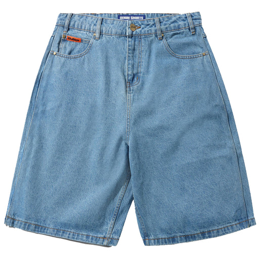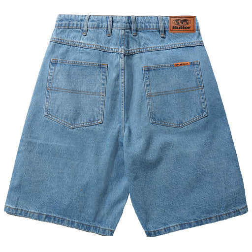 Butter Goods Baggy Denim Short in Washed Indigo 100% Cotton baggy fit denim shorts Contrast gold stitching Embroidered coin pocket & waist b...