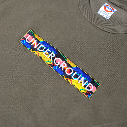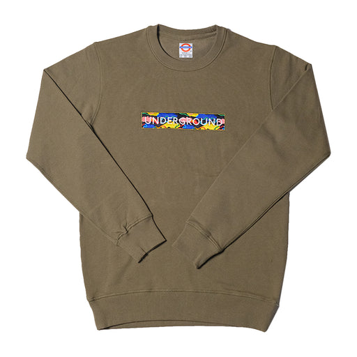 Underground Cloud Camo Box Logo Crew Neck - Army Green