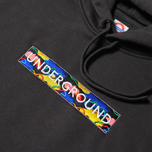 Underground Cloud Camo Box Logo in Charcoal Pullover hood Full Embroidery Rubber Branding Sleeve Kangaroo pocket Inset sleeves Lined hood Tonal sh...