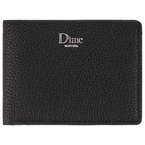 Dime Studded Bi-Fold Wallet in Black 100% Leather Debossed silver foil Classic logo Card slot interior
