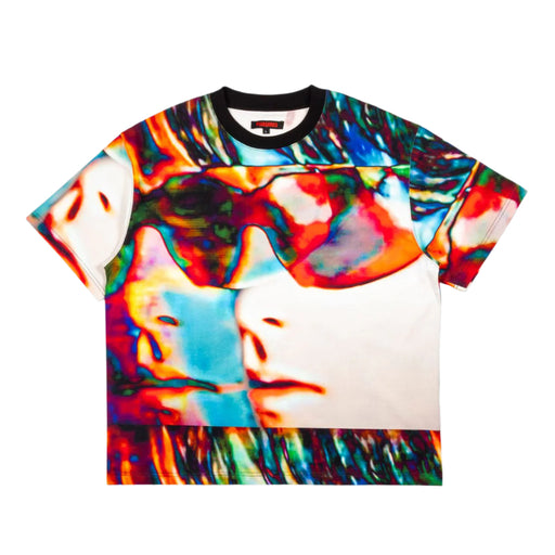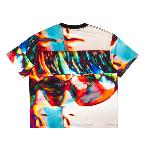 Pleasures Psycho Heavyweight T-Shirt Multi colored Short Sleeve Boxy Tee 100% Cotton 26 doubles jersey / 280GSM Contrast black collar Allover ...